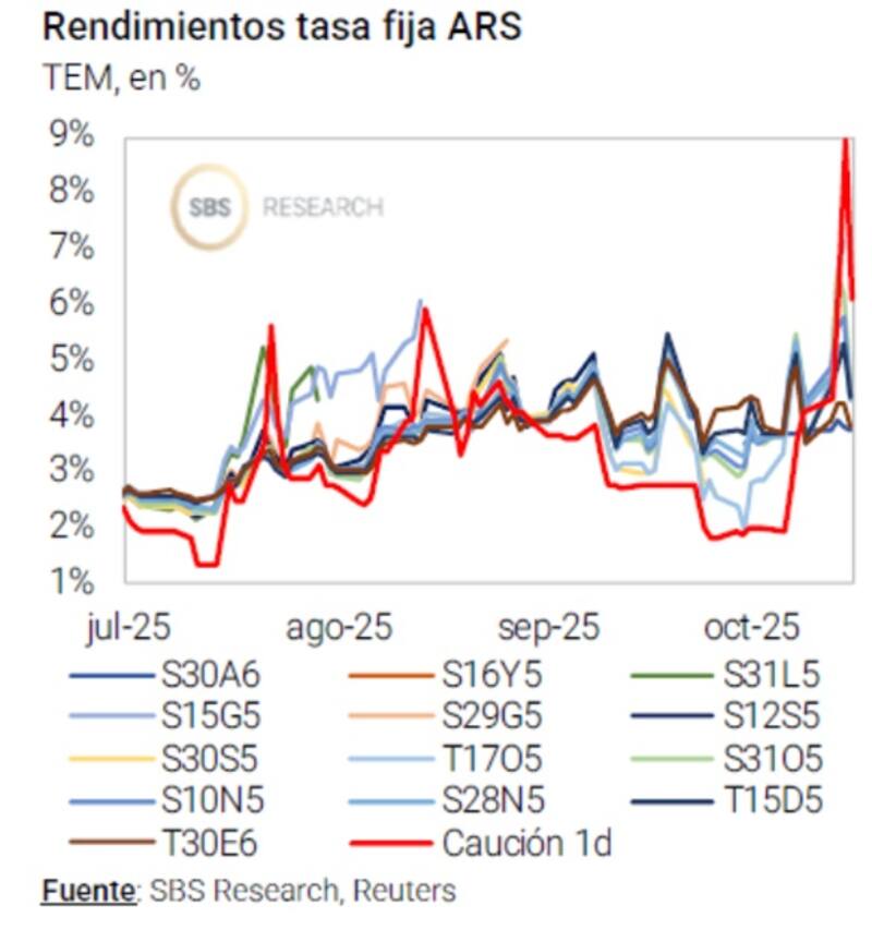 Lisandro Meroi , Research Analyst de TSA Bursátil, coincidió en que los movimientos de tasas en pesos de las últimas ruedas se inscriben en un contexto de cambiante liquidez y volatilidad pre electoral.