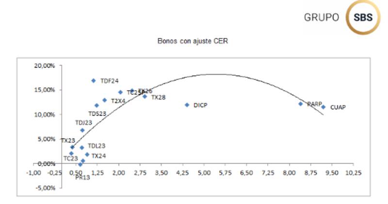 "Para el mediano plazo, si bien la curva CER se ha acomodado en mayores niveles de spread, existe la sensación que el ajuste dólar linked quedó algo rezagado", comentó.