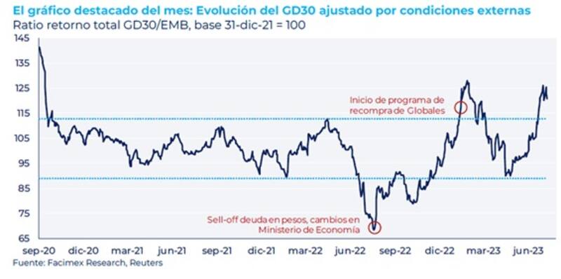 "Tenemos una mirada constructiva sobre la parte corta de la curva de los bonos en dólares, estando el GD30 en primer lugar por su mayor liquidez. Para aquellos inversores más optimistas consideramos que el AL30 es una buena opción dentro de los bonos ley local, aunque con un mayor riesgo de cola respecto al GD30", dijeron.