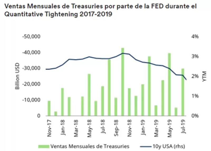 La Fed reducirá hasta u$s 60.000 millones de sus tenencias en bonos del Tesoro por mes y u$s 35.000 millones de su tenencia en activos respaldados por hipotecas (MBS). Eso es casi el triple del ritmo del Quantitative Tightening de la Fed de 2017 a 2019.