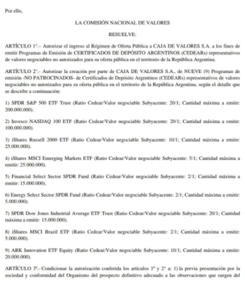 Con los cambios normativos, se podrá adquirir nueve ETF desde Argentina, comprando un Cedear de los cuales estos ETF son subyacentes. Dicho Cedear podrá ser suscripto en pesos o en dólares.