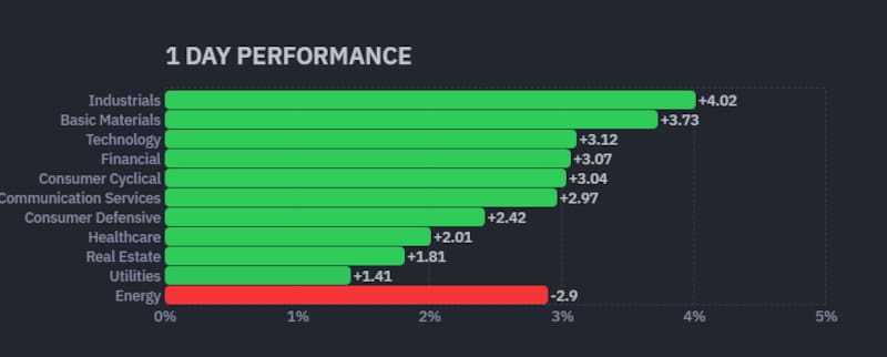 También acompañaron los sectores vinculados al consumo, con consumo discrecional (3%) y servicios de comunicación (2,9%). Incluso los sectores defensivos, como salud (2%) y servicios públicos (1,4%), cerraron en positivo, aunque con menor impulso.