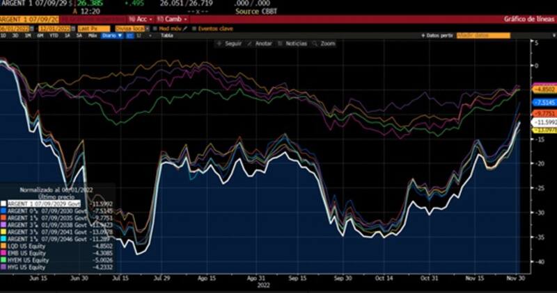 De esta manera, los Globales operan en el nivel más alto desde junio pasado y en noviembre tuvieron un salto del 20% en promedio, siendo la mayor ganancia mensual desde que salieron a cotizar tras el canje de deuda.