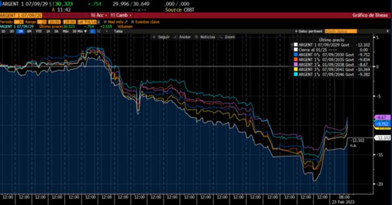 De hecho, según los analistas de PPI, la deuda argentina está entre las que más sufrieron las debilidades de febrero (hasta el día de ayer).