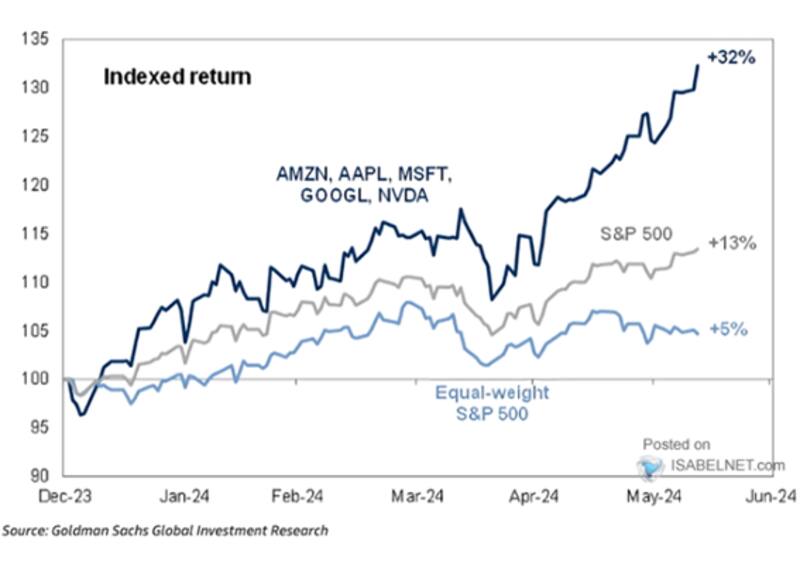 Esto significa que las acciones más importantes del índice están brindando un enorme impulso al rendimiento del S&P500.
