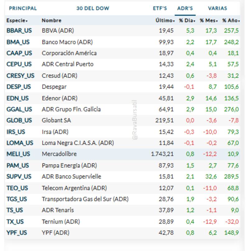 En los EE.UU., donde también se operó una jornada reducida, los ADR de bancos argentinos siguieron descollando con avances de 5,3% en BBVA, 2,9% en Galicia y 2,1% en Supervielle.