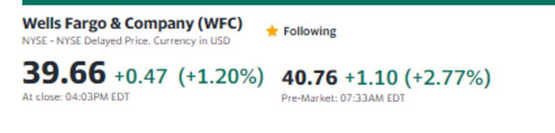 Las acciones de Wells Fargo suben 2,8% en el pre market.