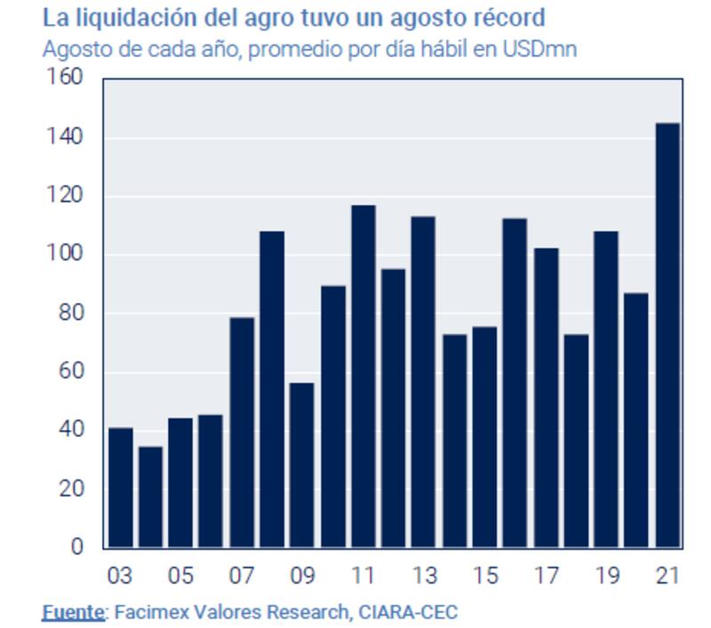 Adrián Yarde Buller, economista jefe y estratega de Facimex Valores dijo que la oferta de divisas en el mercado cambiario se mantiene muy alta, aunque la misma irá perdiendo fuerza hacia fin de año por la estacionalidad de las exportaciones.