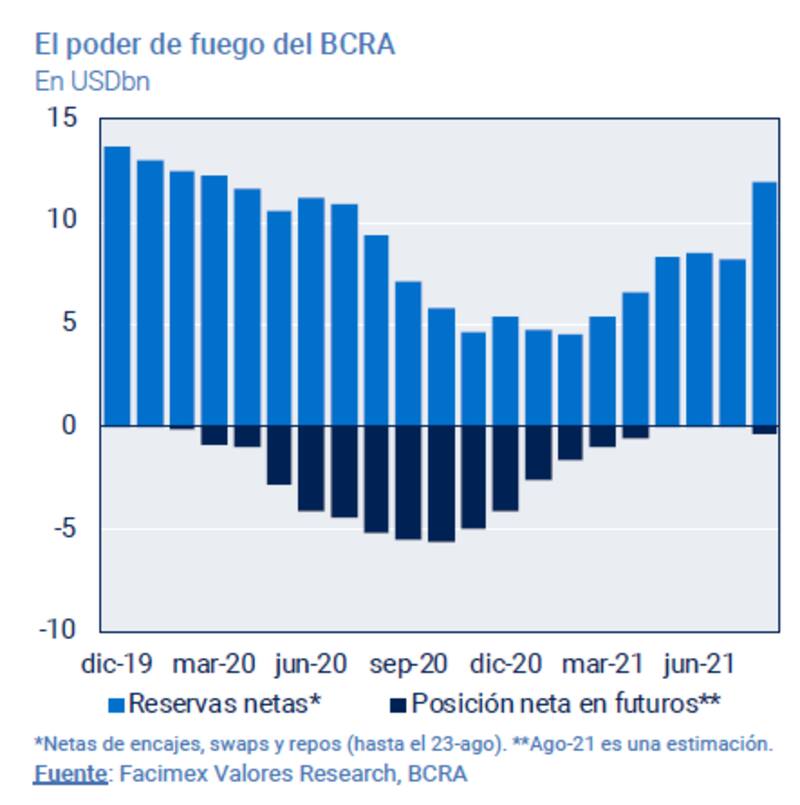 Entre el poder de fuego que dispone el BCRA es su mayor cantidad de reservas netas desde junio pasado, así como también una posición neutral en los contratos vendidos de dólar futuro, lo cual le permite contar con herramientas para contener presiones cambiarias a futuro.
