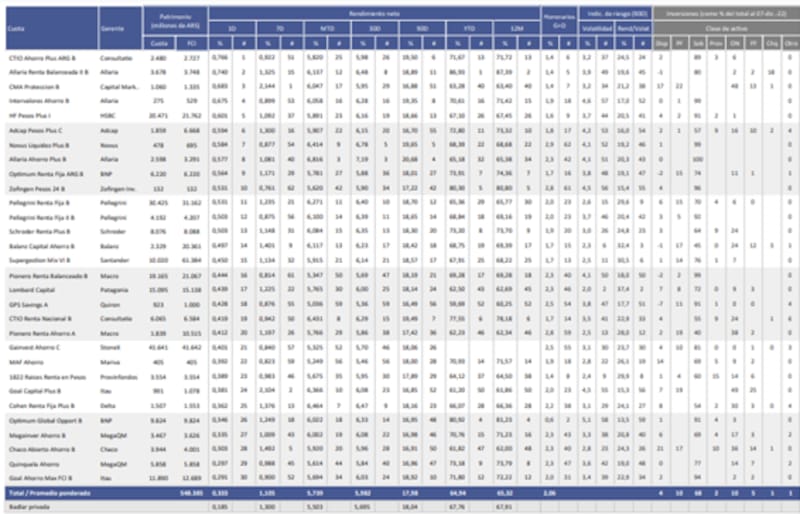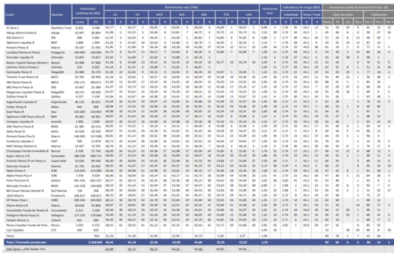 Según datos de 1816, el fondo T+1 con mayor retorno durante 2022 fue el de Allaria Renta Balanceada, con ganancias del 87 por ciento.