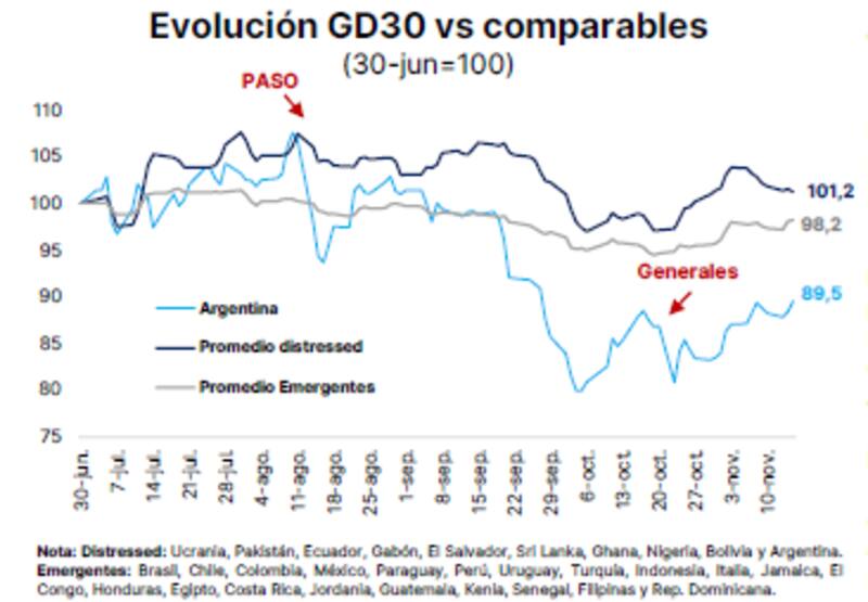 Los bonos argentinos suben en la antesala electoral e intentan acelerar a pocas jornadas antes de la segunda vuelta presidencia.