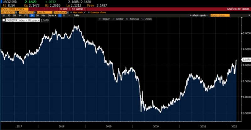 "Con claras presiones inflacionarias (en parte transitorias por la guerra) y un mercado laboral sólido, están dadas las condiciones para que la Fed comience su ciclo de alzas de tasas en la próxima reunión. En este sentido, el mercado descuenta una suba de tasas de 25 puntos básicos (pbs), a la vez que se debate entre 6 y 7 subas de 25 pbs para todo el año", dijo.