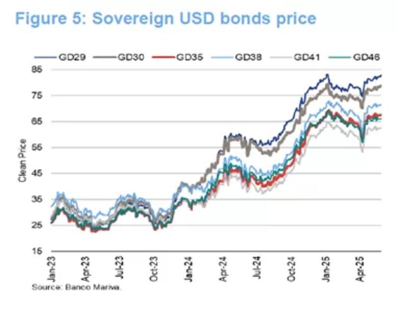 Desde Research Mariva agregaron que los fundamentos internos se mantienen lo suficientemente sólidos como para permitir que los bonos soberanos converjan a mediano plazo a rendimientos similares a los de los créditos B-.