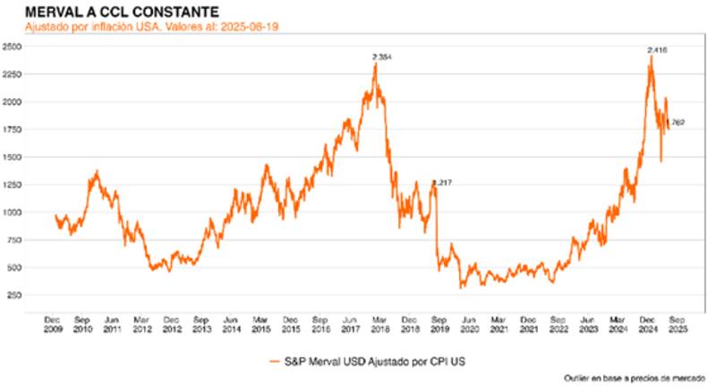 Hoy los principales índices bursátiles se encuentran cerca de sus máximos históricos. En cambio, el S&P Merval en dólares se encuentra un 31% debajo de los picos históricos.