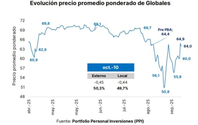Pero Trump reavivó la incertidumbre con su ultimátum sobre el resultado de las elecciones. "Es una volatilidad absolutamente histórica la que estamos viviendo en Argentina. Si uno considera que el oficialismo puede ganar las elecciones legislativas del 26 de octubre y que el apoyo de Estados Unidos va a continuar materializándose hay mucho para subir. Ahora bien, lo que pasó es una clara evidencia de lo que podría suceder ante un escenario negativo. Hay que tener cuidado", remarcó Palais.