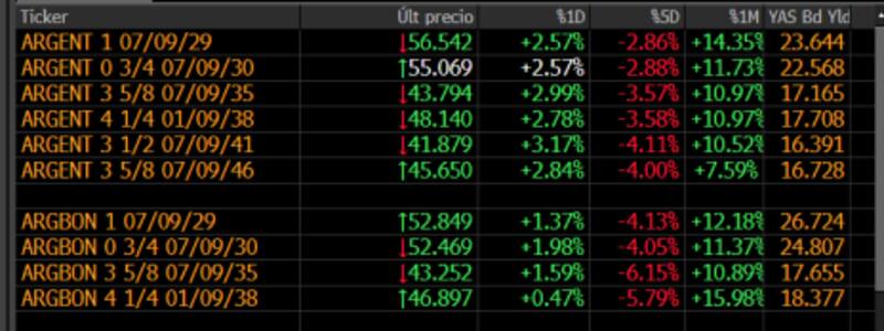 Hasta ayer, la renta fija argentina marcaba pérdidas de hasta 8% desde sus picos recientes.