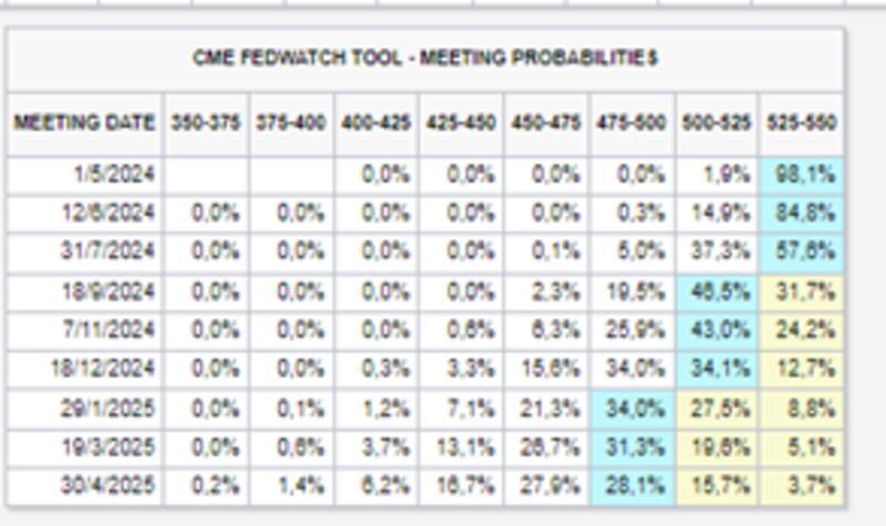 Hoy el mercado especula ver solamente una baja de tasas de la Fed este año. Se espera que deje sin cambios la tasa hasta julio y que en la reunión de septiembre se aplique la primera reducción, al rango de 5% y 5,25%.