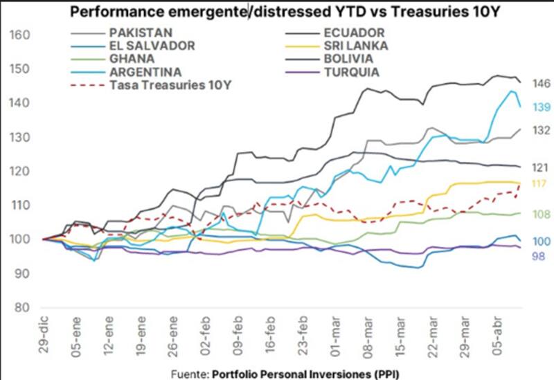 Los analistas de Portfolio Personal Inversiones (PPI), remarcaron que la mala performance de los créditos distressed se dio en una rueda que los Treasuries continuaron al alza, replicando la dinámica de la semana pasada.