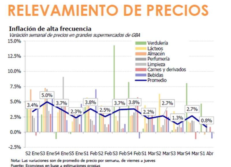 Según su relevamiento de precios, el mes comenzó con una variación semanal de 0.8%, marcando un claro contraste con el ritmo registrado en marzo.