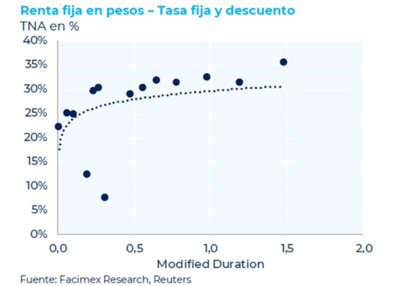 Ahora la curva opera con una leve pendiente positiva con tasas mensuales en torno al 2,5% mensual.