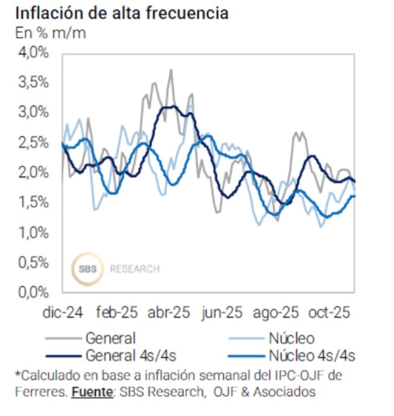 En lo que respecta a los datos de alta frecuencia, las mediciones privadas sugieren que la inflación se habría ubicado por encima del 2% mensual en octubre.