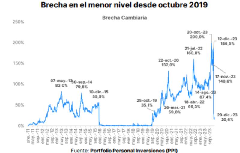 "De manera análoga a lo que ocurre con las compras del BCRA en el MULC, la dinámica positiva de la brecha cambiaria muy probablemente se tope con algunos obstáculos a partir de febrero (aunque no descartamos que pueda suceder antes)", dijeron desde Ecolatina.