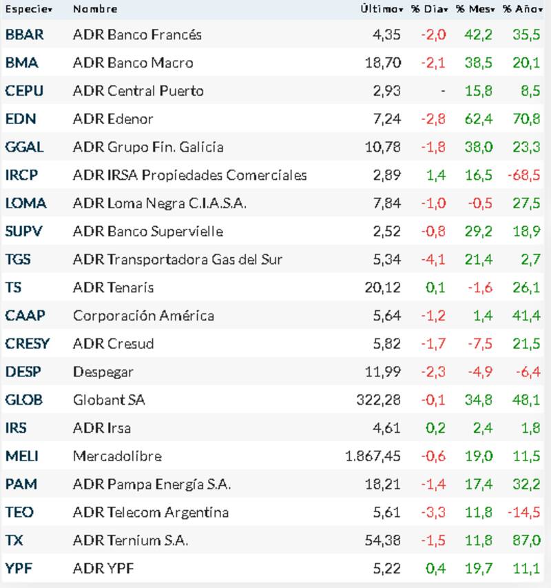 Los saltos locales también tuvieron su correlato en las cotizaciones de los ADR, con un Edenor ganando 62,4% en dólares en el mes y Banco Francés subiendo 42,2% en Wall Street.
