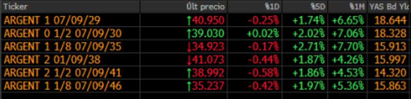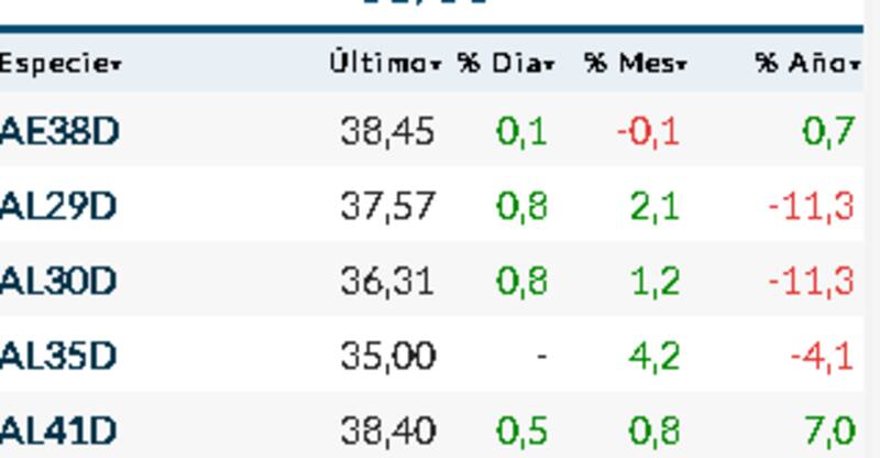 Los ley local, en cambio anotaron una planilla positiva en ByMA. Tanto el AL30D como el AL29D subieron un 0,8 por ciento.