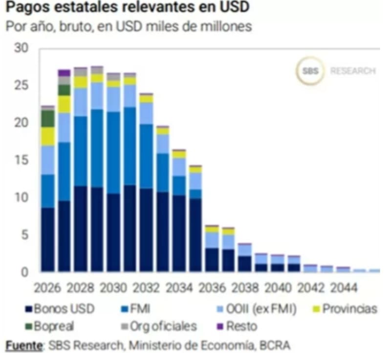 Un monto similar se dará en 2027, apenas por debajo de los u$s 10.000 millones total de deuda.