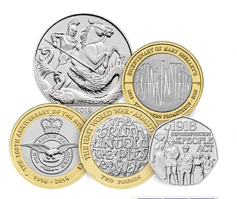 Nuevas monedas que conmemoran varias efemérides históricas, entre ellas el centenario de la concesión del primer voto femenino y la publicación de la novela "Frankenstein" el 1 de enero de 1818, comenzaron a circular hoy en el Reino Unido.