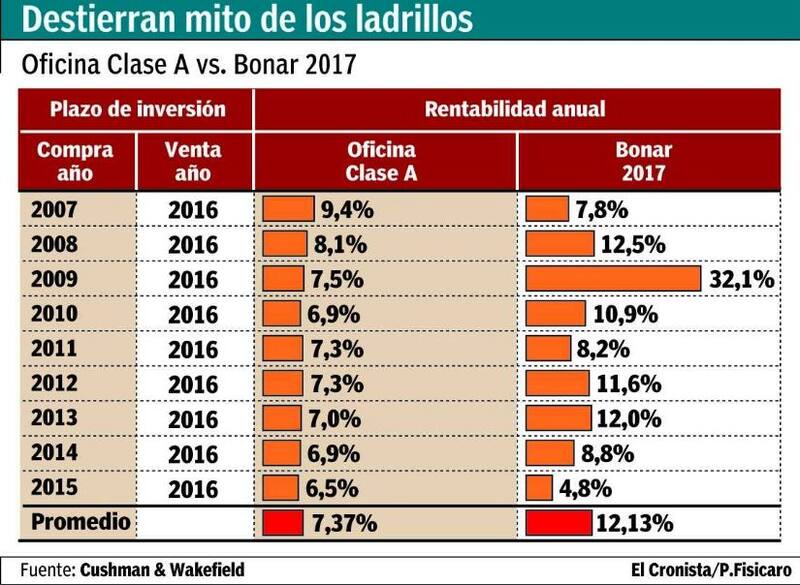 Mariano Capellino, CEO de INMSA Real Estate Investments Company, hace una salvedad: "Si se compara el rendimiento que se obtuvo en otros mercados (Estados Unidos 2009 al 2015 versus los bonos del tesoro americano) se podrá ver que ahí las oficinas cuadruplicaron el rendimiento de un bono".