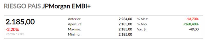 Como resultado, el riesgo país también retrocedía levemente, un 2,20% para alcanzar las 2185 unidades.