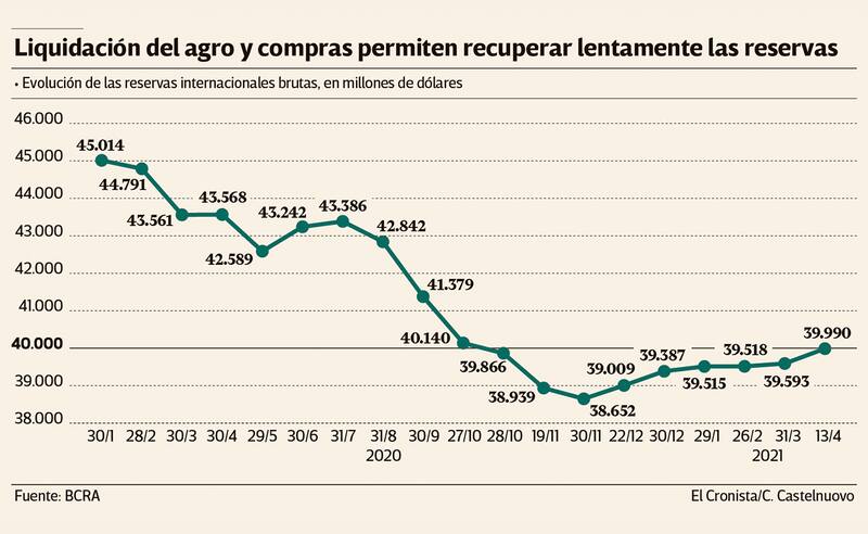 Asimismo, aunque sólo una parte de esas compras termina en las arcas de la entidad, las reservas brutas están al borde de volver a superar los u$s 40.000 millones, piso que perforó a finales de octubre del año pasado.