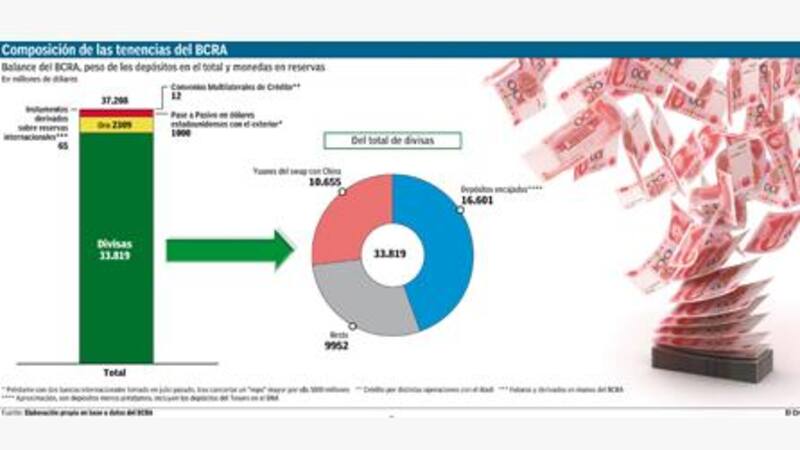 Además, a las reservas las sostienen el swap de monedas con China acordado por el Gobierno anterior y que fuera activado en octubre de 2014, en plena caída de reservas. De los u$s 37.208 millones que componen a la reservas, el equivalente a u$s 10.655 millones (algo más de un cuarto del total) son yuanes chinos de aquél acuerdo, que no son fondos propios.
