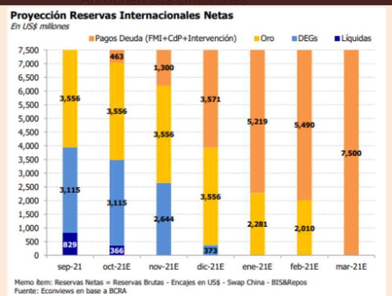Según cálculos de Econviews, a este ritmo de venta de dólares,el BCRA arranca noviembre sin reservas liquidas y arranca enero sin DEG.
