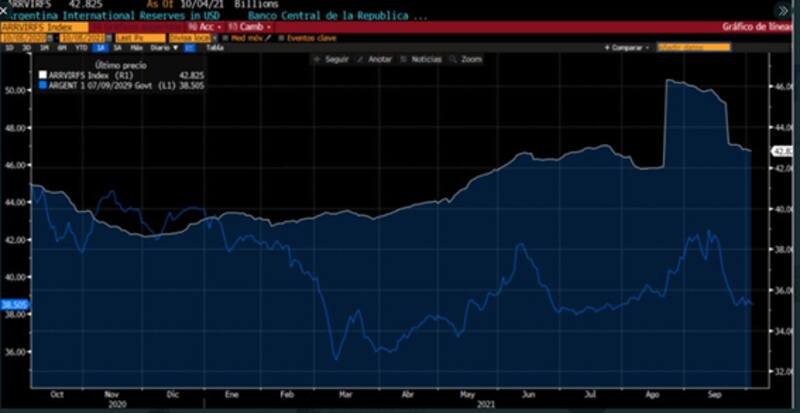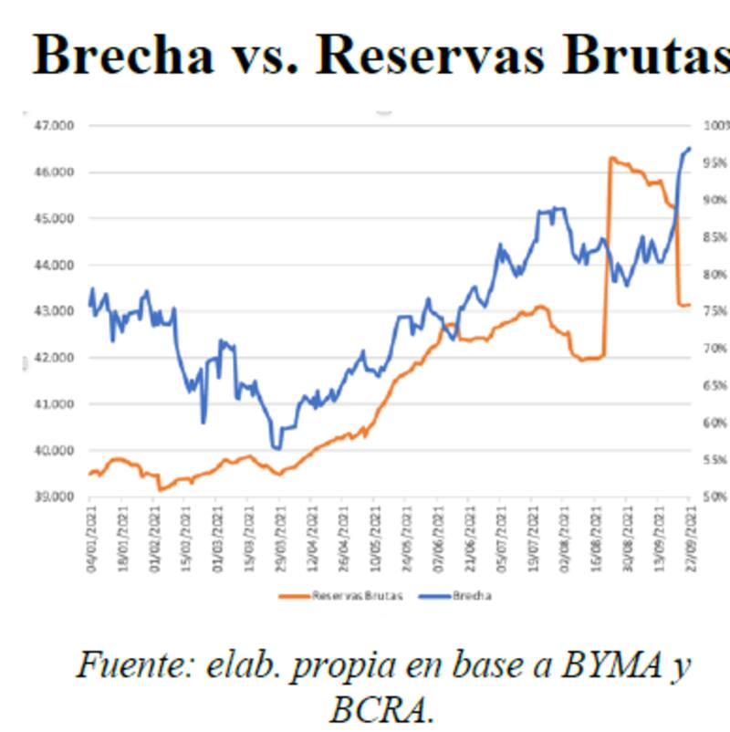El problema con la caída en el nivel de reservas radica en que tiene un impacto directo en la dinámica de los bonos, pero también en la brecha cambiaria y el tipo de cambio.