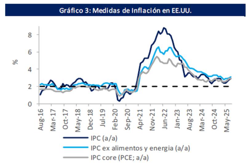 "Encaramos la última parte del año con cierta incertidumbre sobre el rumbo económico. Powell parece haberse inclinado por correr el riesgo de mayor inflación antes que enfrentar un freno más fuerte de la actividad -además de contribuir a "distender" la relación con Trump-. La amenaza de estanflación aumenta, pero por el momento nos mantenemos en un escenario de soft-landing, con la economía creciendo, la tasa de desocupación en línea con la meta y una inflación más inestable, aunque no muy alejada de los niveles actuales", dijo Polo.