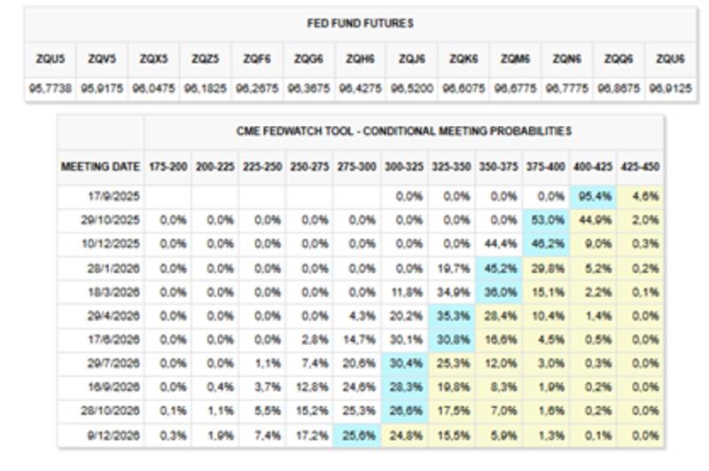 Actualmente, la probabilidad implícita de ver recortes de tasas de 25 puntos básicos en septiembre es del 95%.