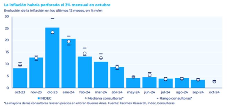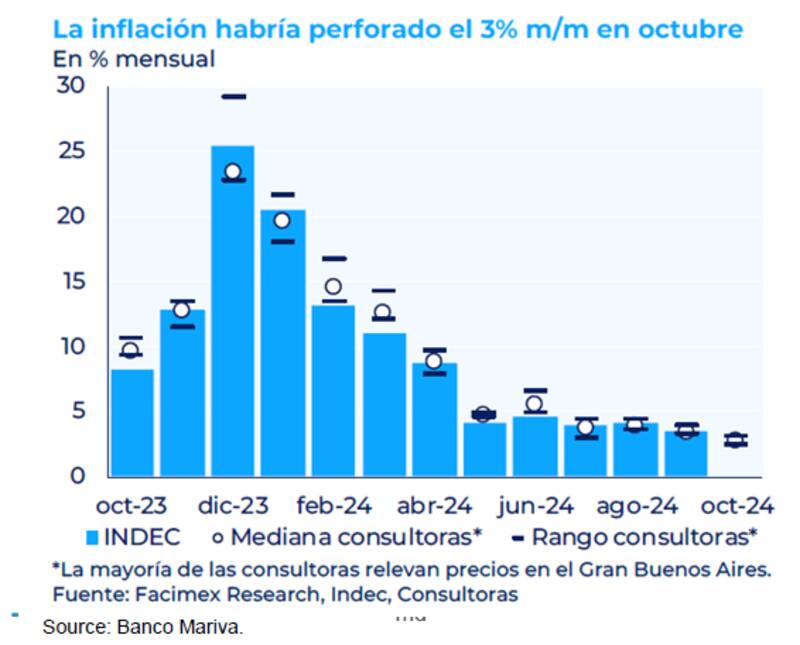 El mercado se prepara para recibir el dato de inflación de octubre y el consenso es que la misma quebraría el 3% por primera vez desde 2021.