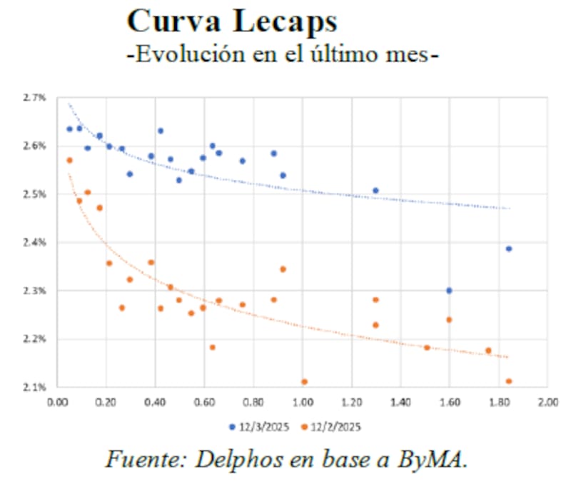 La curva de Lecap se desplazó al alza en las últimas semanas, lo cual marca un contexto de tasas de interés más altas. Esto permite que los bonos a tasa fija operen con tasas más elevadas, dando mayor margen para que el carry sea exitoso.