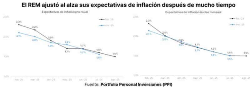 "A diferencia de la mayoría de las encuestas realizadas durante el gobierno de Milei, el REM corrigió sus expectativas inflacionarias ligeramente al alza. En particular, este suceso no pasaba desde agosto de 2024, cuando el relevamiento subió 0,1 punto porcentual su previsión de la inflación general para el mes en curso (de 3,8% a 3,9%)", explicaron desde Portfolio Personal Inversiones (PPI).