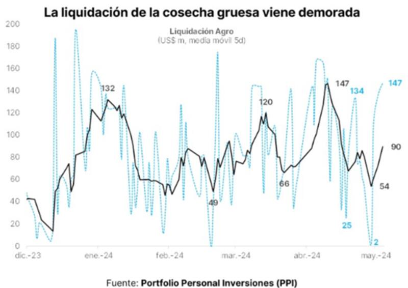 Nicolás Cappella, Sales Trader Grupo IEB, agregó que las constantes lluvias están haciendo muy difícil recolectar la cosecha, lo que se traduce en una menor liquidación de divisas en el MULC.