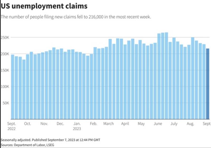 Estas cayeron en 13.000 a 216.000 en la semana que pasada, cayendo respecto de los 229.000 de la semana previa.