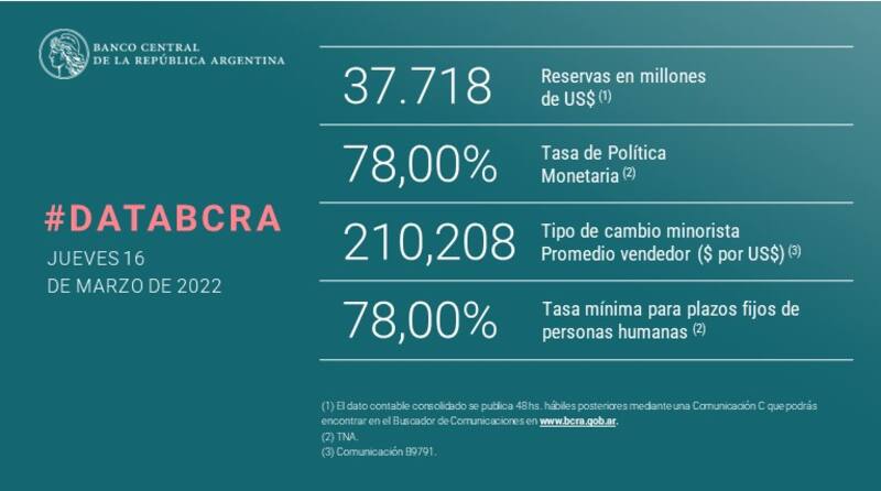 El directorio de la entidad monetaria actualizó la remuneración de los depósitos a plazo, llevándolos a un rendimiento de 78% nominal anual para el caso de los depósitos de hasta 10 millones de pesos de las personas humanas y de 69,5% nominal anual para el resto de los plazos fijos. La decisión fue tomada luego de que en febrero el Índice de Precios al Consumidor (IPC) registrara una suba de 6,6%.