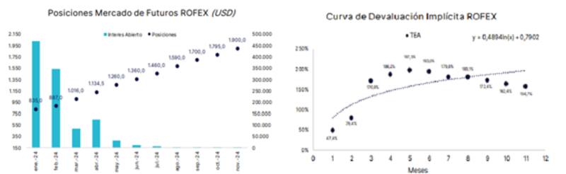 "Pareciera que el mercado apuesta a un movimiento adicional en el tipo de cambio oficial para el segundo y tercer trimestre de este año. Los movimientos en el mercado de futuros y la curva dólar linked y dual confirman que el mercado descree que el crawling peg pueda sostenerse en 2% mensual "más allá del sinceramiento de precios relativos", como había expuesto el BCRA", comentaron.