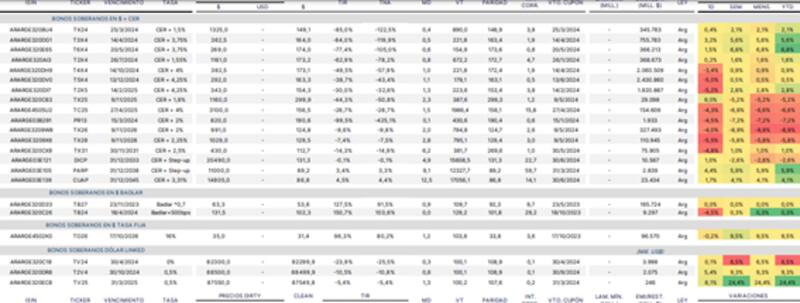 Esto contrasta con la dinámica de los bonos que ajustan por CER, los cuales ya habían subido previamente, sobre el final del 2023.