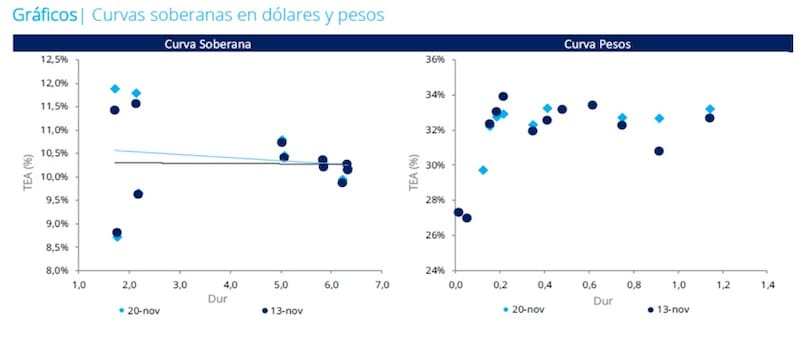 “Luego de las elecciones, y alimentado también por las declaraciones del equipo económico, el mercado comenzó a mirar la recompra de deuda como un evento de creciente probabilidad. Sin embargo, la expectativa es que este proceso se concentre en la deuda internacional, explicando el premio que está pagando la deuda ley local. En este contexto, nosotros seguimos prefiriendo la parte más larga de la curva soberana, con el AL35 a la cabeza”, comentaron desde Adcap Grupo Financiero.