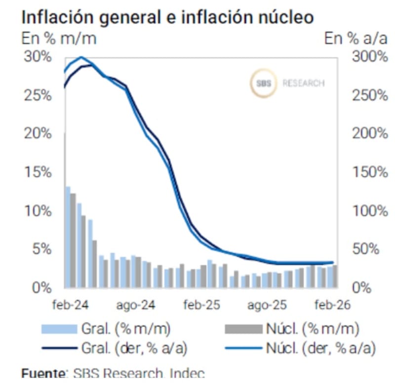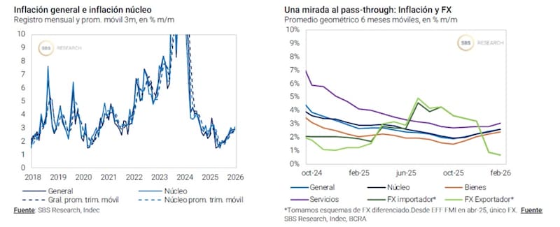 “La guerra en Medio Oriente puede presionar sobre algunos rubros, que se suman a los factores inerciales, monetarios y cambiarios domésticos. En un contexto en que la demanda estacional de pesos continuará cediendo, si el shock exógeno implica presión sobre precios, podría demorarse algo más el relajamiento de condiciones monetarias”, afirmó Franco.
