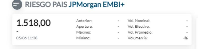 De esta manera, el riesgo país local volvió a ubicarse por encima de los 1518 puntos, su valor más alto desde marzo pasado.
