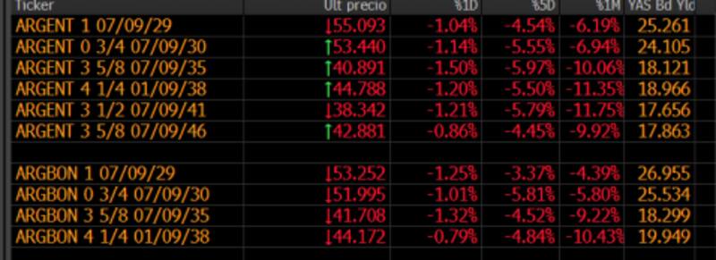 Así, en el acumulado de la última semana, los bonos muestran pérdidas de entre 4% y 6%, mientras que, en el último mes, las bajas ascienden al 11,7%